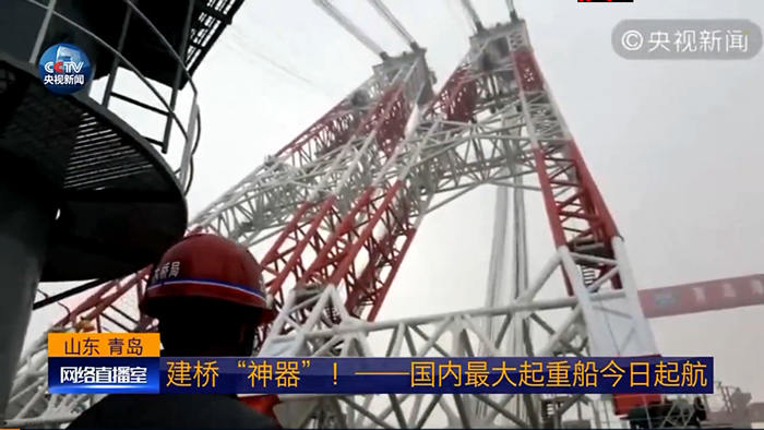 1月9日,由中鐵大橋局投資建造的“大橋海鷗”號起重船在青島海西重機碼頭完成交付,這是繼“德浮3600噸浮吊”之后,海西重機交付的又一臺起重設(shè)備。央視新聞進行了全程跟蹤報道。