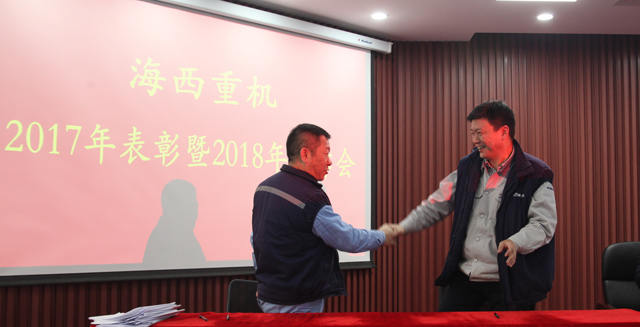 1月6日,海西重機(jī)2017年表彰暨2018年工作會(huì)在901會(huì)議室順利召開,公司主管及以上人員、2017年度優(yōu)秀員工參加會(huì)議,公司黨委書記、董事長鄧振山主持會(huì)議。