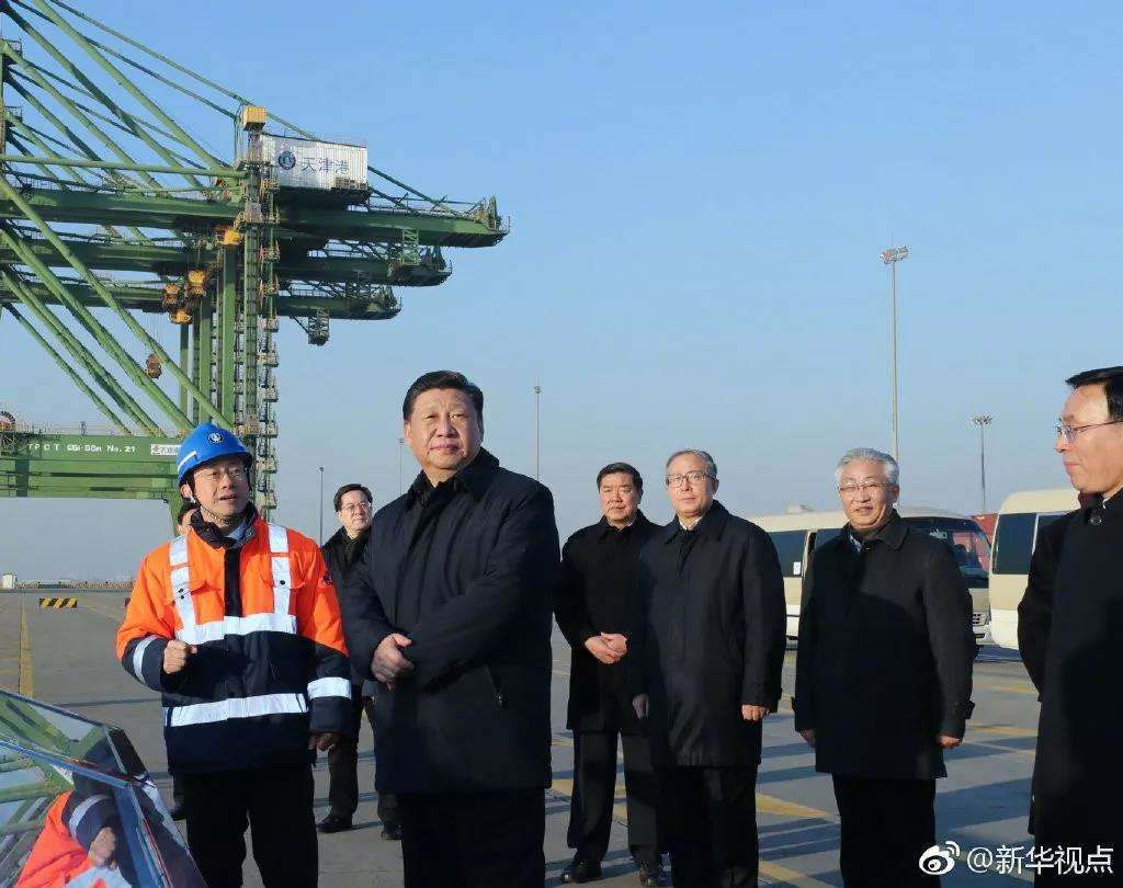 17日下午,正在天津考察的習(xí)近平來(lái)到天津港碼頭。