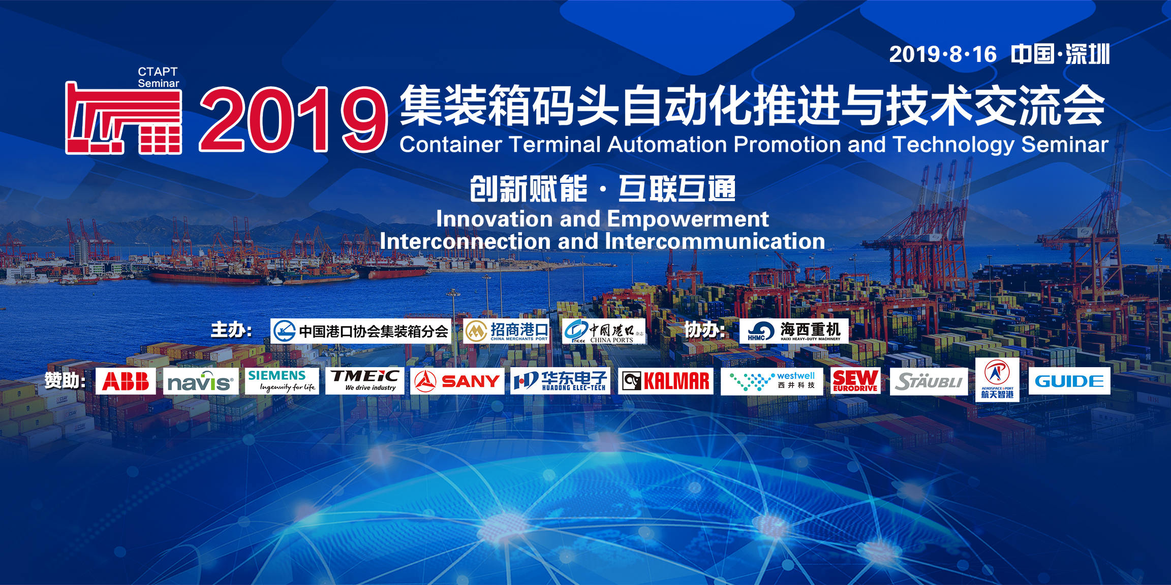 8月16日-17日,“2019集裝箱碼頭自動(dòng)化推進(jìn)與技術(shù)交流會(huì)”在深圳成功舉辦,海西重機(jī)作為協(xié)辦單位,實(shí)力出席!