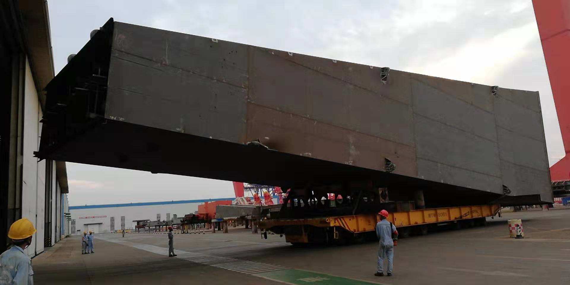 8月23日晚上19:30分,運(yùn)載M30剛性腿整體分段的380T平板車(chē),在操控人員的審慎操控下,緩緩駛出海西重機(jī)鋼構(gòu)制作車(chē)間大門(mén),成功轉(zhuǎn)運(yùn)出車(chē)間!這一幕看似平淡無(wú)奇的場(chǎng)景,凝結(jié)了多少員工的汗水和智慧,后面又有多少創(chuàng)新,唯有親身經(jīng)歷了這場(chǎng)“戰(zhàn)斗”的人才能真正體會(huì)。