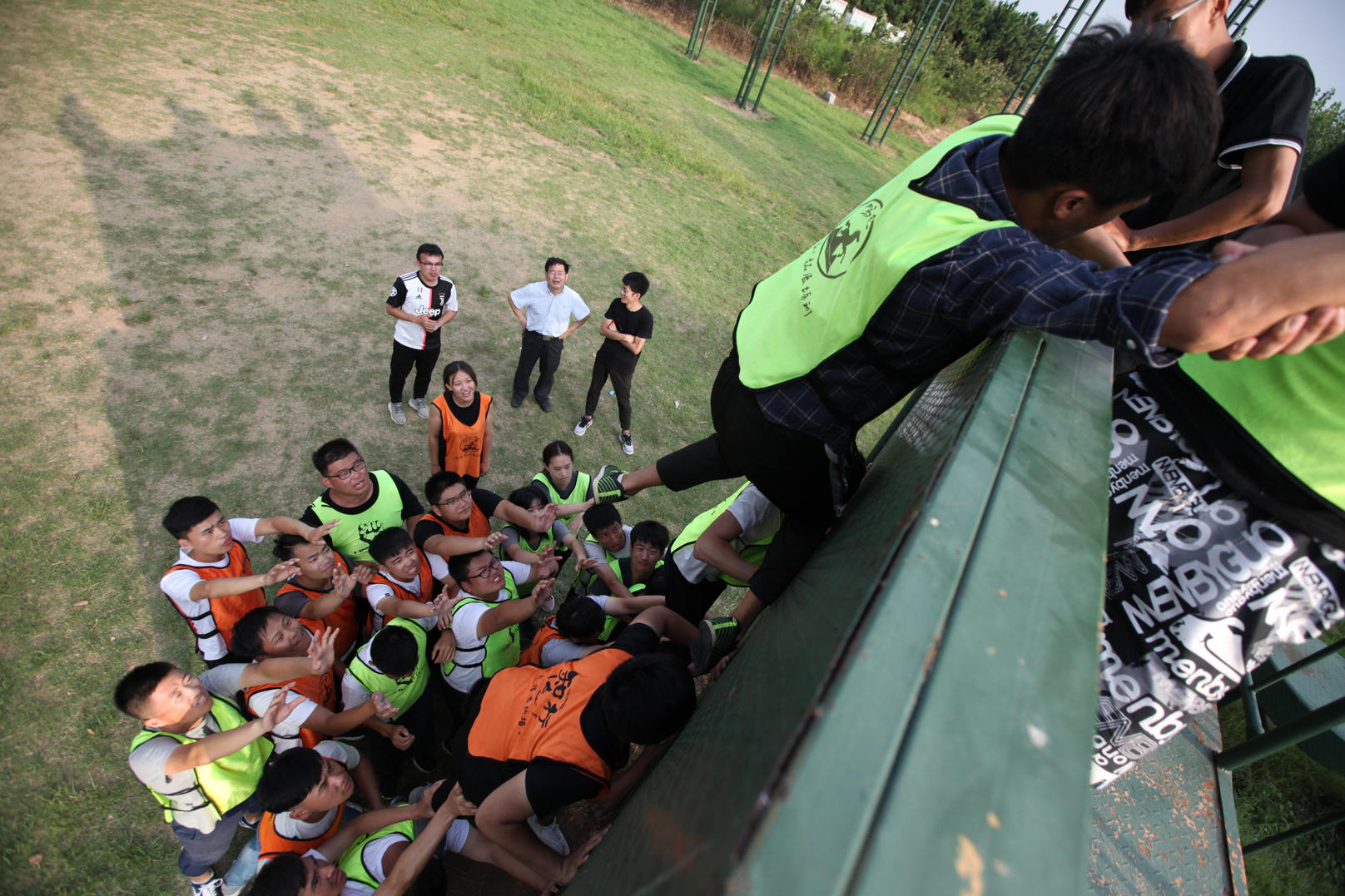 畢業(yè)墻項目是最難的挑戰(zhàn),隊員們需要在不借助外部構(gòu)造的條件下全部爬到4.2米的高墻上,時間只有七分鐘。通過搭建“人梯”,隊員們一個個送了上去。隊員們沒有經(jīng)過專業(yè)訓練,面對4.2米的高墻,墻下也沒有助力,最后一名隊員想要上去簡直太難了。墻上的隊員利用倒掛金鉤拉住墻下的隊員,大家都爆發(fā)了前所未有的力量,最后成功了,全體成員登上高墻,完成任務(wù)。宣布成功的這一刻,大家空前的團結(jié),空前的感動,不拋棄,不放棄,才是一個真正的團隊。
