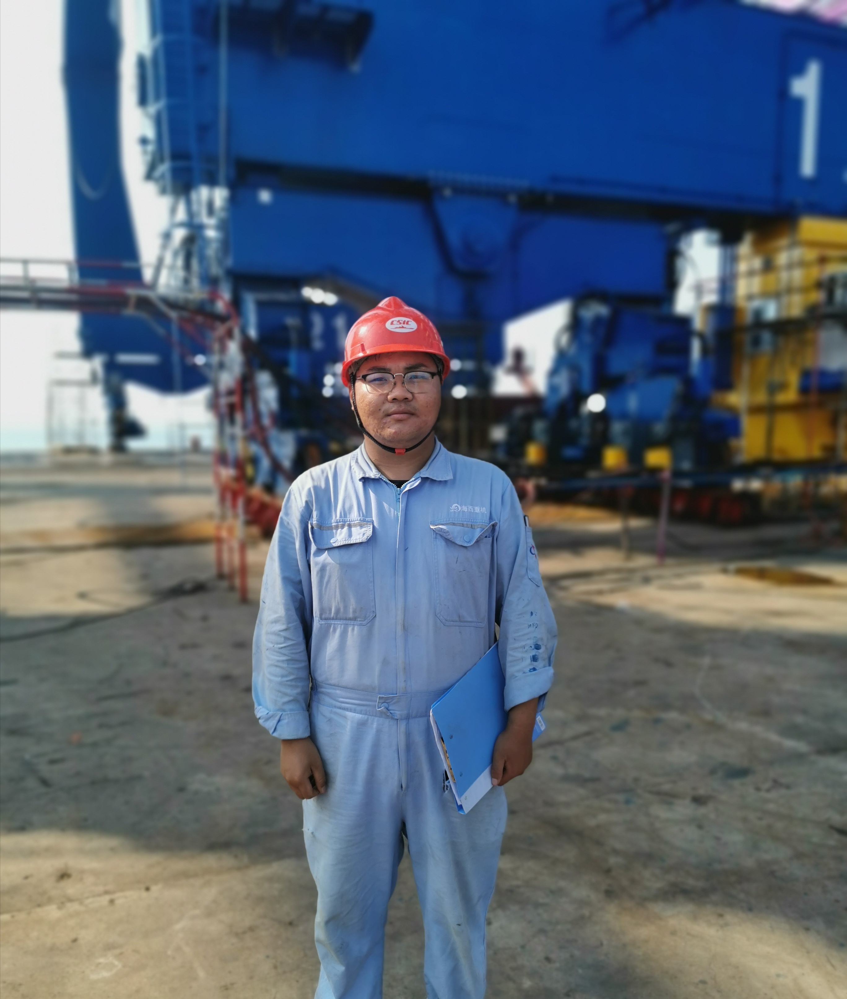 “我先后前往紅光碼頭總裝現(xiàn)場(chǎng)以及九橋鋼結(jié)構(gòu)制作現(xiàn)場(chǎng),幾乎每天都有雨,現(xiàn)場(chǎng)施工壓力大,經(jīng)常要冒雨趕工,在雨中工作已經(jīng)成為常態(tài),哪怕渾身濕透也要繼續(xù)。通過(guò)與施工隊(duì)溝通,在師傅牟壽堂的指導(dǎo)下,清點(diǎn)現(xiàn)場(chǎng)物資,不斷解決現(xiàn)場(chǎng)技術(shù)問(wèn)題,加深了對(duì)整機(jī)結(jié)構(gòu)和裝配的理解?,F(xiàn)場(chǎng)碼頭吊裝需要使用浮吊,浮吊方案的編制十分復(fù)雜,不僅僅要考慮吊高、幅度與載重,還要考慮水位、吊裝角度、臂架干涉等一系列的問(wèn)題,為了把參數(shù)計(jì)算準(zhǔn)確,經(jīng)常加班加點(diǎn),還好努力就有收獲,現(xiàn)在對(duì)吊裝作業(yè)的理解更深了?!眲㈤F旗在感嘆自己的成長(zhǎng),感恩于他的付出,畢竟無(wú)論是小青年還是老青年,這片藍(lán)天是靠大家共同撐起的。