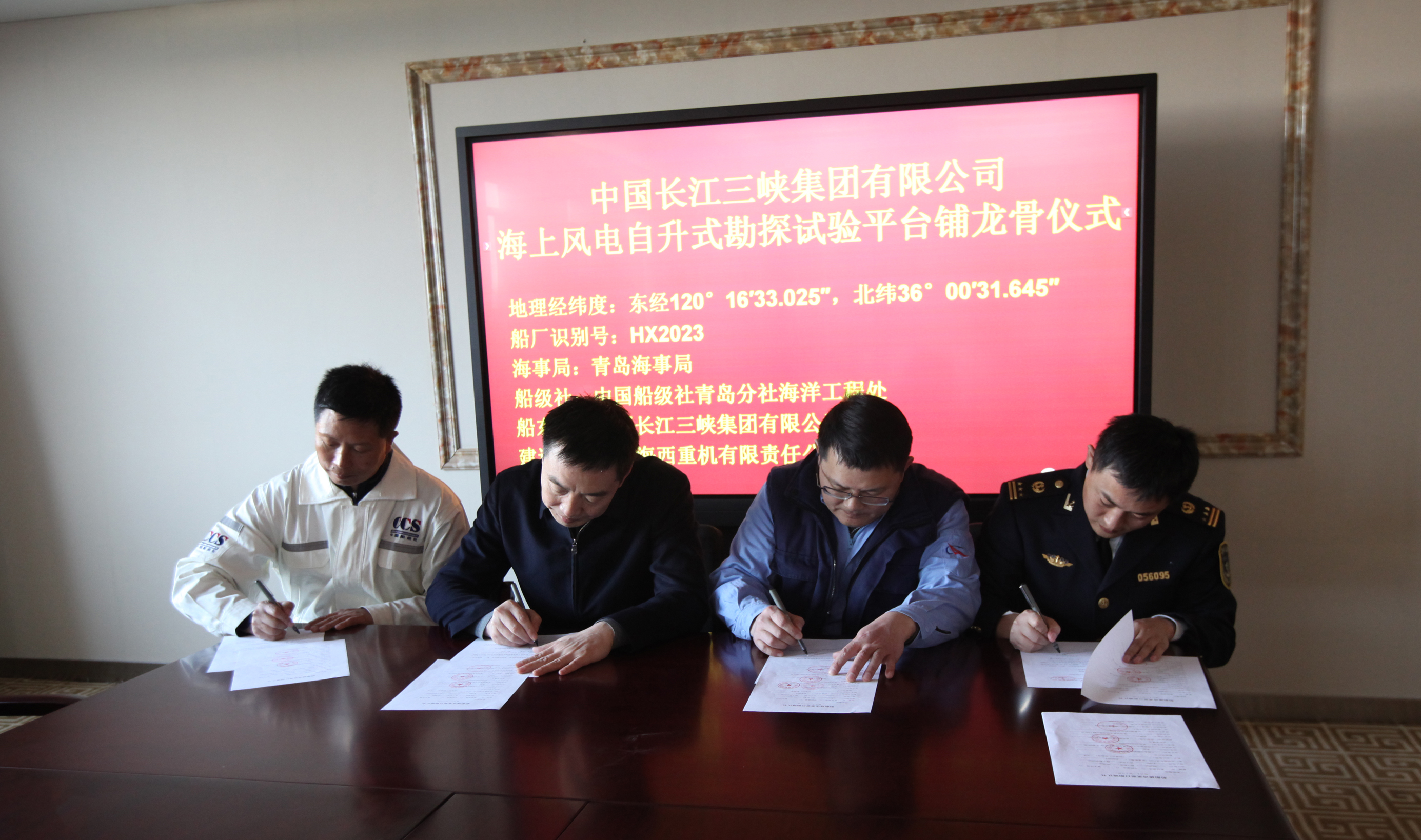 12月22日上午,在青島海事局、中國船級社青島分社、中國長江三峽集團有限公司、中國船舶集團旗下武漢船機海西重機各方代表共同見證下,“中國三峽101”海上風(fēng)電自升式勘探試驗平臺順利完成鋪龍骨儀式,標(biāo)志著該項目正式進入平臺搭載建造階段。