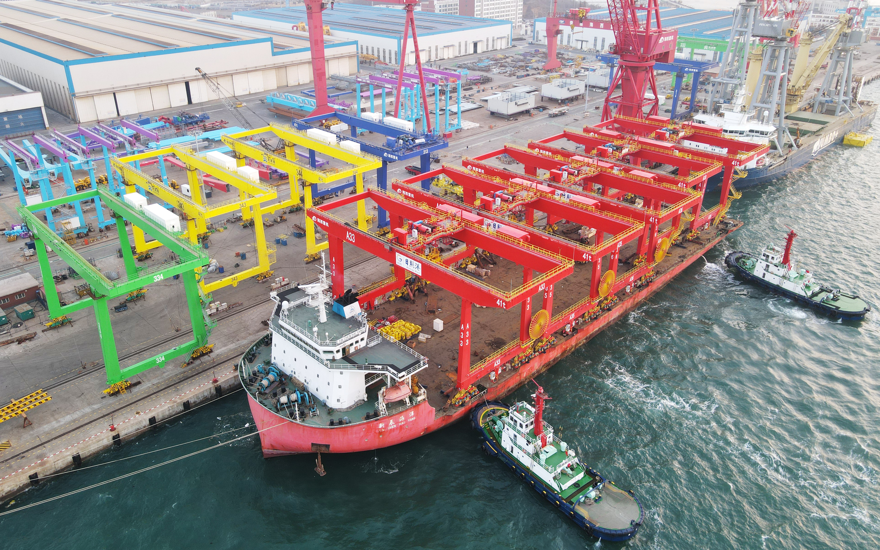 2月2日下午,中國船舶集團(tuán)旗下武漢船機(jī)海西重機(jī)公司為日照港集裝箱自動(dòng)化堆場(chǎng)三期項(xiàng)目打造的第四批5臺(tái)自動(dòng)化軌道吊順利到港,至此該項(xiàng)目16臺(tái)設(shè)備全部完成廠內(nèi)制作。