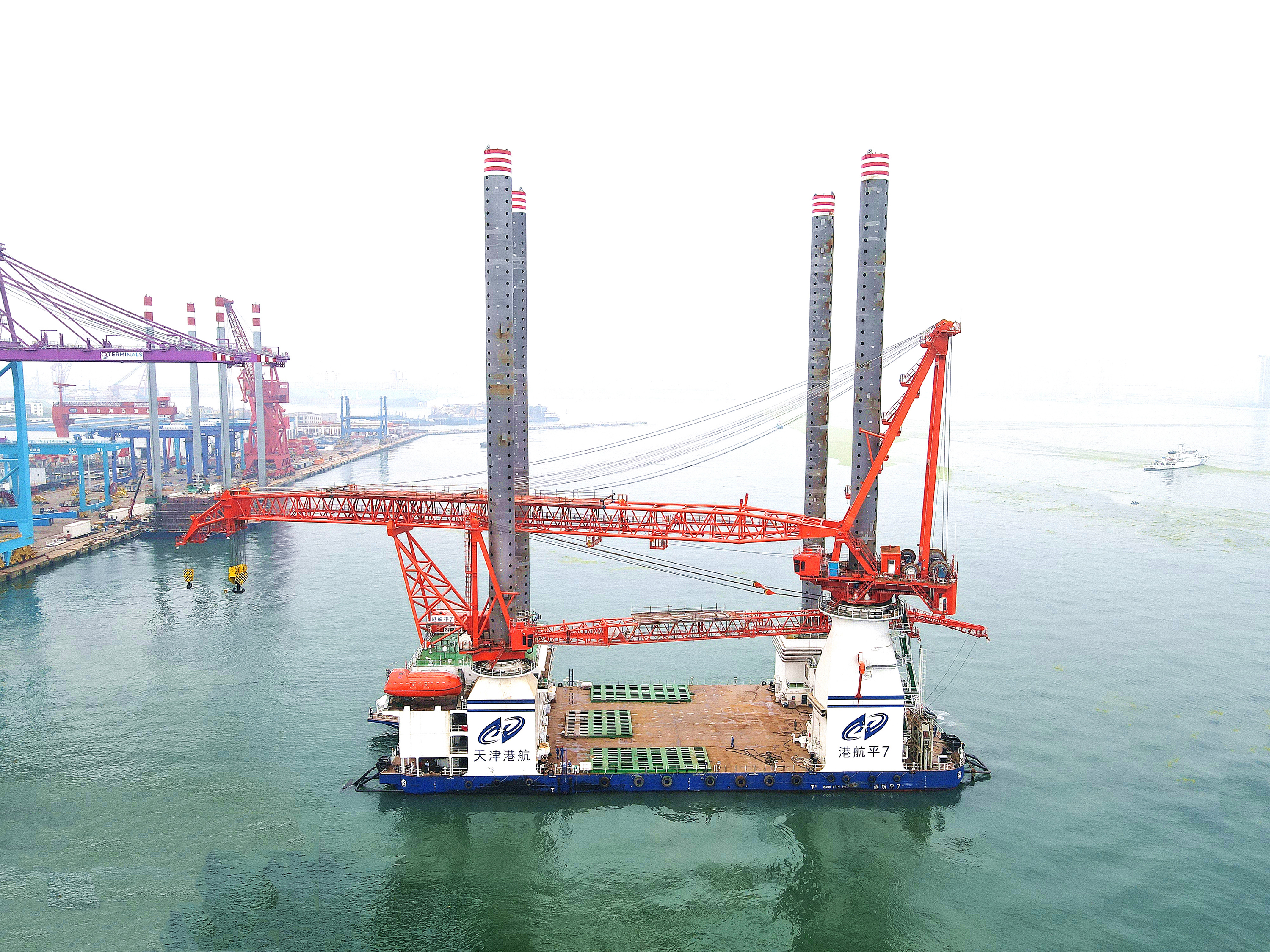 “港航平7”正式服役后,可與1200T全回轉(zhuǎn)自升式海上平臺(tái)——“港航平9”、5000噸風(fēng)電工藝駁船——“港航駁5”、世界最大打擊能量MHU3500S液壓沖擊錘等船機(jī)設(shè)備構(gòu)建更加完備的風(fēng)電施工專(zhuān)業(yè)設(shè)備體系,將有效緩解海上風(fēng)電施工設(shè)備緊張壓力,提升海上風(fēng)電規(guī)?;鳂I(yè)能力,對(duì)貫徹落實(shí)黨中央、國(guó)務(wù)院關(guān)于碳達(dá)峰、碳中和重大決策部署,確保“十四五”開(kāi)好局、起好步,促進(jìn)國(guó)家綠色能源的發(fā)展貢獻(xiàn)力量。