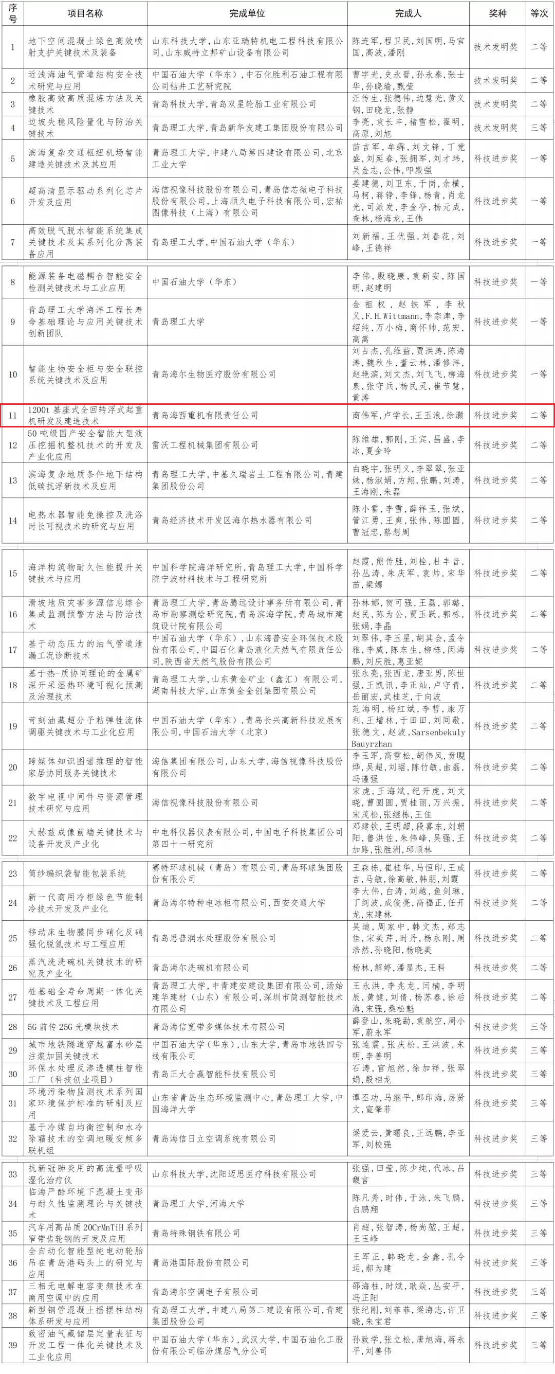 12月16日,青島市科學(xué)技術(shù)獎(jiǎng)勵(lì)暨科技創(chuàng)新大會(huì)在市級(jí)機(jī)關(guān)會(huì)議中心召開,對(duì)2020年度獲得青島市科學(xué)技術(shù)獎(jiǎng)的項(xiàng)目和人員進(jìn)行表彰獎(jiǎng)勵(lì)。中國船舶集團(tuán)旗下武漢船機(jī)海西重機(jī)“1200t基座式全回轉(zhuǎn)浮式起重機(jī)研發(fā)及建造技術(shù)”項(xiàng)目榮獲青島市科技進(jìn)步二等獎(jiǎng)。
