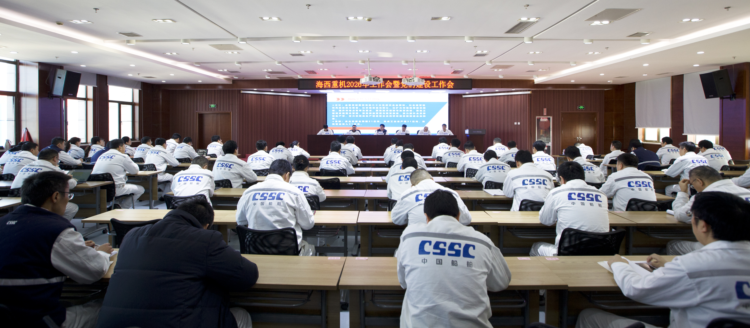 會議要求,2026年要圍繞“全面貫徹落實(shí)黨的二十大和二十屆歷次全會精神,以合規(guī)管理和風(fēng)險防控為基礎(chǔ),以價值創(chuàng)造為中心,以提高市場經(jīng)營接單和市場占有率提升為重點(diǎn),聚焦技術(shù)創(chuàng)新和改革,聚焦工程項目規(guī)范化管理,聚焦精益管理和數(shù)智制造,提升全員勞動生產(chǎn)率,努力實(shí)現(xiàn)由生產(chǎn)型制造企業(yè)向研發(fā)服務(wù)型制造企業(yè)轉(zhuǎn)型”的年度方針,重點(diǎn)做好以下幾個方面工作:一是堅持“國內(nèi)+國際”雙循環(huán)市場開發(fā),打造差異化競爭優(yōu)勢;二是推進(jìn)產(chǎn)能升級,整合外部資源,確保生產(chǎn)任務(wù)落地;三是持續(xù)開展技術(shù)筑基、文化鑄魂,構(gòu)建自主可控技術(shù)體系;四是健全安全質(zhì)量管理,提升管控質(zhì)效;五是深化管理效能改革,激發(fā)企業(yè)內(nèi)生動力;六是強(qiáng)化政治引領(lǐng),全面提升黨建質(zhì)量。