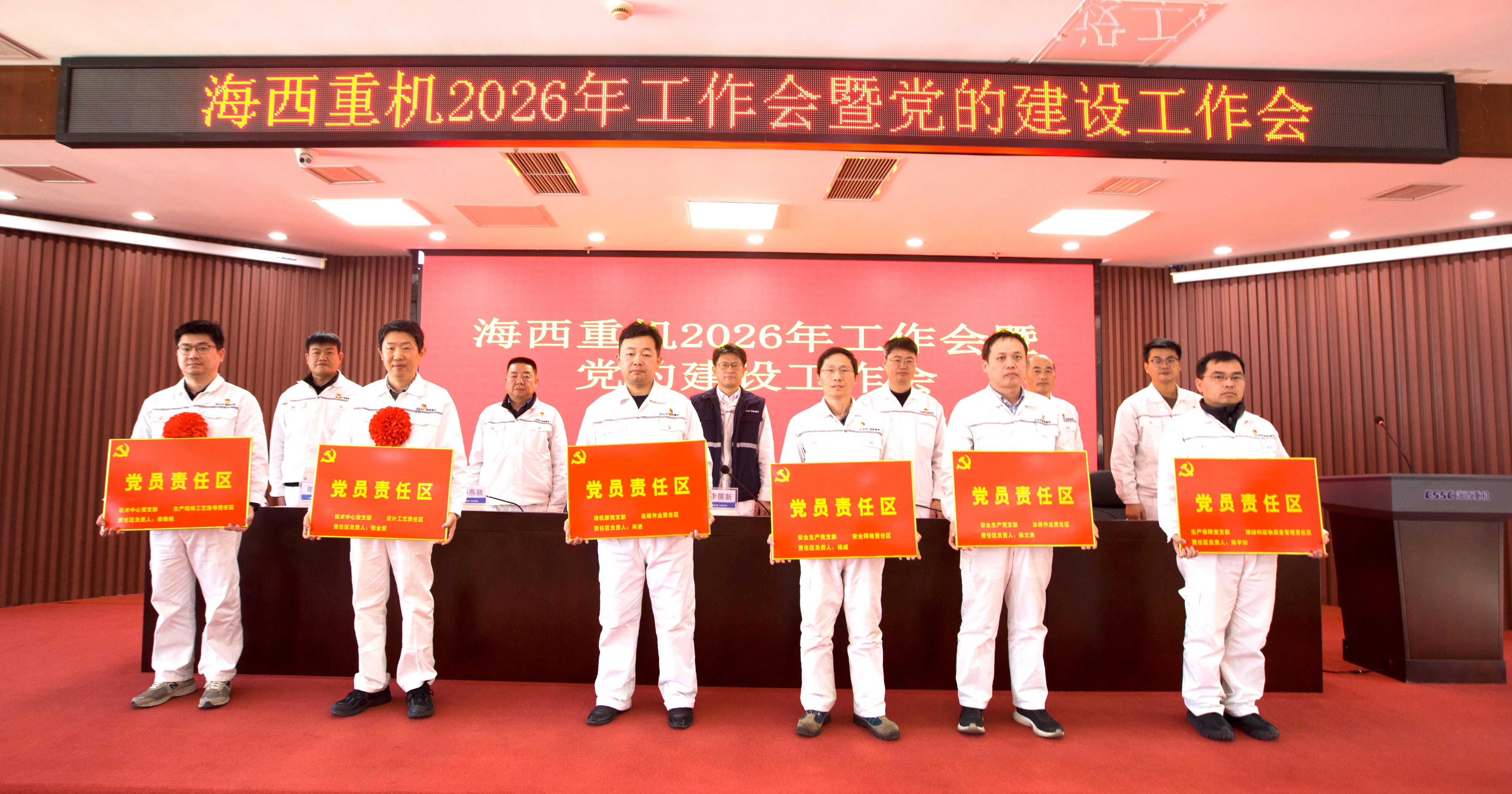 為充分發(fā)揮黨支部戰(zhàn)斗堡壘作用和黨員先鋒模范作用,推動黨建工作與生產(chǎn)經(jīng)營深度融合,韓燕驍同志代表公司黨委宣布了《關(guān)于推進(jìn)2026年“黨員示范崗、黨員責(zé)任區(qū)、黨員突擊隊”工作方案》,成立M62A項目、M66項目、G355項目、H36-1/2項目、PT39-1/2項目等5個黨員突擊隊,并進(jìn)行現(xiàn)場授旗;成立安全網(wǎng)格責(zé)任區(qū)、涂裝作業(yè)責(zé)任區(qū)、設(shè)計工藝責(zé)任區(qū)、生產(chǎn)現(xiàn)場工藝指導(dǎo)責(zé)任區(qū)、鋼結(jié)構(gòu)實(shí)物質(zhì)量管理責(zé)任區(qū)、總裝作業(yè)責(zé)任區(qū)等6個黨員責(zé)任區(qū),并進(jìn)行現(xiàn)場授牌。