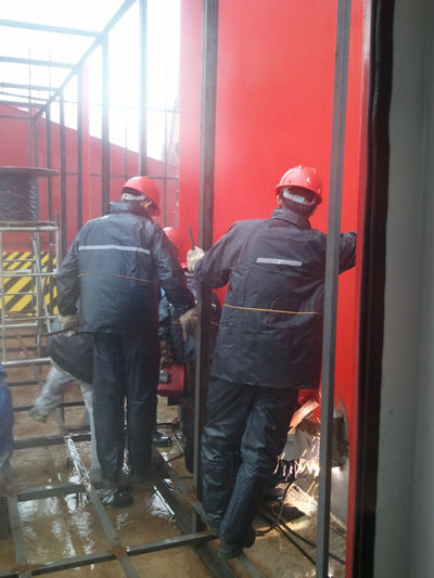 藍(lán)天白云下,二十幾臺(tái)顏色各異的門座起重機(jī)猶如一群鋼鐵巨人般站立在海西重機(jī)碼頭,碼頭上到處都是忙碌的身影,一派緊張繁忙景象。當(dāng)您深入到總裝現(xiàn)場(chǎng),有這樣一群人格外引人注目,他們頭戴紅色安全帽,身穿藍(lán)色工作服,或燒焊——弧光閃爍,或裝配——仔仔細(xì)細(xì),或布纜——整整齊齊,或吊裝——膽大心細(xì)。滿頭的汗水抹去后現(xiàn)出的是一個(gè)個(gè)年輕的面龐,汗水濕透的衣衫下映出的是一個(gè)個(gè)激情的身軀。這就是海西重機(jī)剛剛組建的安裝隊(duì),海西重機(jī)的第一支自身培養(yǎng)的“金藍(lán)領(lǐng)”隊(duì)伍,一批剛畢業(yè)的學(xué)生,一群渴望成功的熱血青年。