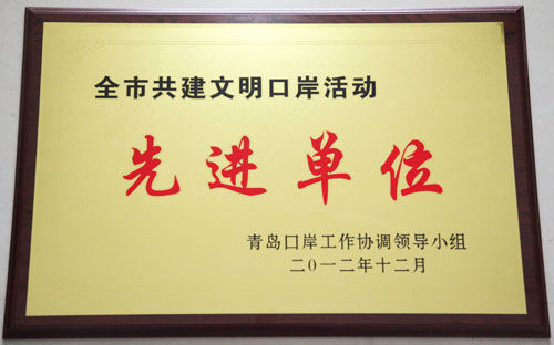 2012年度“全市共建文明口岸活動先進單位”榮譽稱號花落青島海西重機有限責任公司。