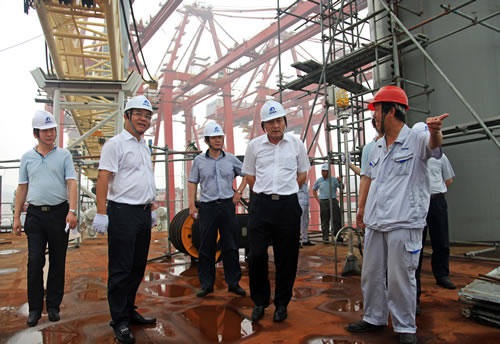 7月15日,中船重工副總經(jīng)理董強深入海西重機生產(chǎn)現(xiàn)場,查看了在制的90米自升式海洋平臺項目、為海南洋浦批量研制的岸橋、輪胎吊項目以及出口意大利的超巴拿馬岸橋(60t-62m岸橋)項目等,并就產(chǎn)品種類調(diào)整實效、安全生產(chǎn)責(zé)任制落實等與各級干部進行交流,提出了指導(dǎo)意見。