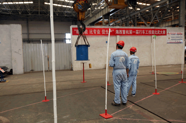 起重吊裝作業(yè)在公司諸多生產(chǎn)工藝環(huán)節(jié)當(dāng)中,是使用頻率較高、危險性較高的作業(yè)工序,安全、平穩(wěn)、準(zhǔn)確、快速地吊裝作業(yè)是高效生產(chǎn)的關(guān)鍵因素。行車占公司起重吊裝設(shè)備超過70%,因此行車工為我司的重點(diǎn)生產(chǎn)崗位之一,其技能水平的高低,在很大程度上影響著產(chǎn)品的生產(chǎn)節(jié)奏,甚至對公司整體上的生產(chǎn)節(jié)拍都會產(chǎn)生重大影響。公司一貫主張“不僅要有好的裝備,還要把裝備維護(hù)、保養(yǎng)好,更要把設(shè)備功用足用好”,在此背景下,為檢驗(yàn)公司行車工的技能實(shí)力,提高行車工崗位意識和技能水平,促進(jìn)行車工自主學(xué)習(xí)、苦練技能,進(jìn)一步提升公司安全、高效的生產(chǎn)能力,由公司黨委主辦,工會承辦的行車工技能比武大賽應(yīng)運(yùn)而生。
