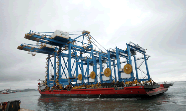 7月31日,海西重機(jī)為山東高速交通物流投資有限公司制造的2臺(tái)65T-46m岸邊集裝箱起重機(jī)順利發(fā)運(yùn),這是繼7月22日東營廣利港7臺(tái)MQ2530門座式起重機(jī)順利發(fā)運(yùn)之后,時(shí)隔8天,海西重機(jī)發(fā)運(yùn)的第二批港機(jī)設(shè)備。