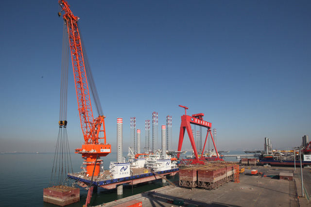 200噸全回轉(zhuǎn)浮式起重機(jī)和3400噸液壓插銷升降系統(tǒng)作為該項(xiàng)目核心設(shè)備,完全實(shí)現(xiàn)了自主設(shè)計(jì)和國產(chǎn)化制造。