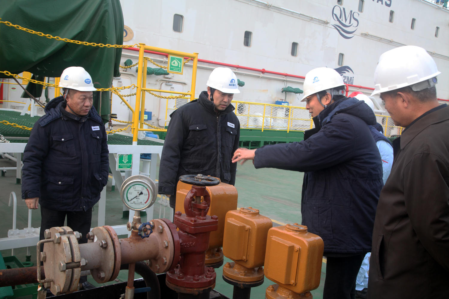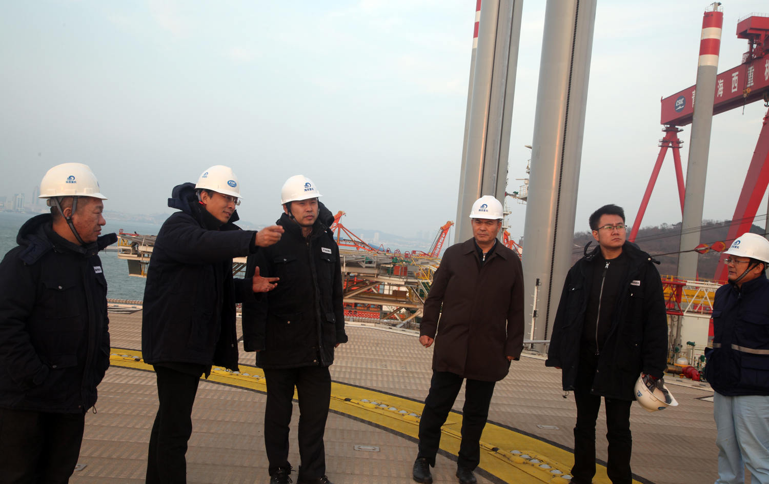 馮永強一行參觀了公司總裝碼頭,登上了公司建造的自升式海工平臺,仔細聽取了武漢總部黨委書記、董事長馬聚勇對武漢船機海西重機發(fā)展歷程、主營業(yè)務(wù)、戰(zhàn)略定位以及生產(chǎn)經(jīng)營形勢等方面的介紹。