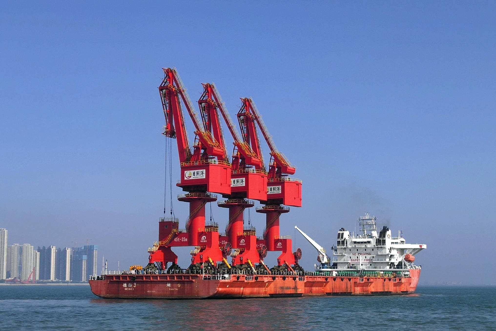 日前,海西重機為日照港山鋼碼頭有限公司打造的3臺45t-35m門座起重機順利發(fā)運。同時,續(xù)簽的日照港山鋼碼頭2臺45t-35m門座起重機項目也已全面開工?!坝瓉硭屯?,一派繁忙。