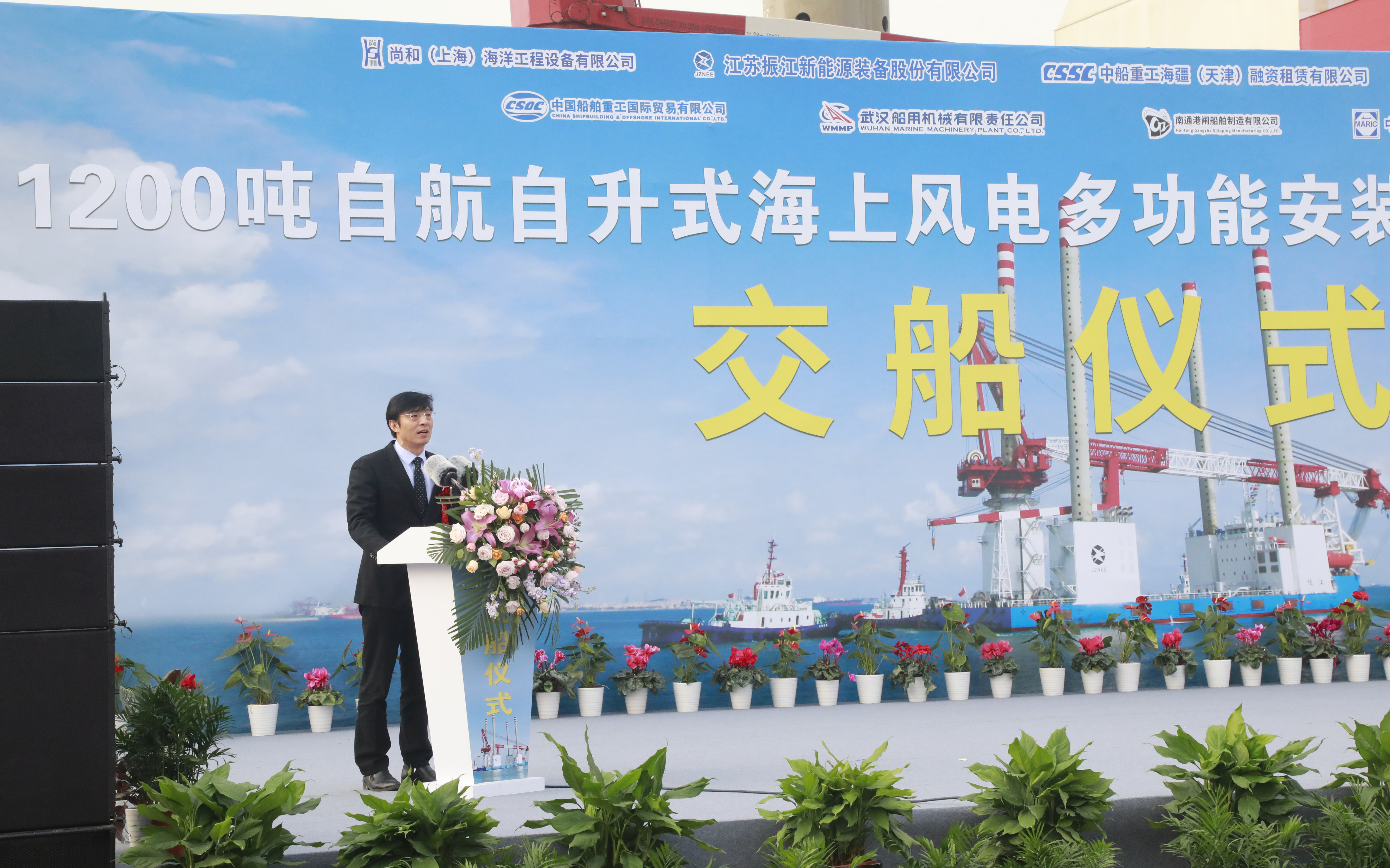 武漢船機(jī)黨委書記、董事長馬聚勇代表公司在平臺(tái)交付儀式上致辭,對(duì)參加交船儀式的各位領(lǐng)導(dǎo)、同仁以及為該平臺(tái)生產(chǎn)制造和試驗(yàn)成功付出辛勤勞動(dòng)的所有監(jiān)造人員和工作人員表示由衷感謝。馬聚勇同志指出,“振江”號(hào)風(fēng)電安裝平臺(tái)是武漢船機(jī)連續(xù)交付多艘自升式輔助平臺(tái)后,再次作為總包方承擔(dān)的全部項(xiàng)目建造任務(wù)。項(xiàng)目合同簽訂后,公司上下高度重視,充分發(fā)揮設(shè)備集成和平臺(tái)總包能力,集中武漢本部和青島海西兩地優(yōu)勢(shì)資源,不斷加強(qiáng)生產(chǎn)組織管理,從源頭上保證了建造質(zhì)量和周期,較好地滿足了平臺(tái)建造進(jìn)展。自平臺(tái)開工建造到今天正式交船,中國船級(jí)社始終給予悉心指導(dǎo),各參建方發(fā)揮自身優(yōu)勢(shì),通力合作,突破多項(xiàng)技術(shù)難關(guān),為平臺(tái)順利交付和使用提供了強(qiáng)有力保障