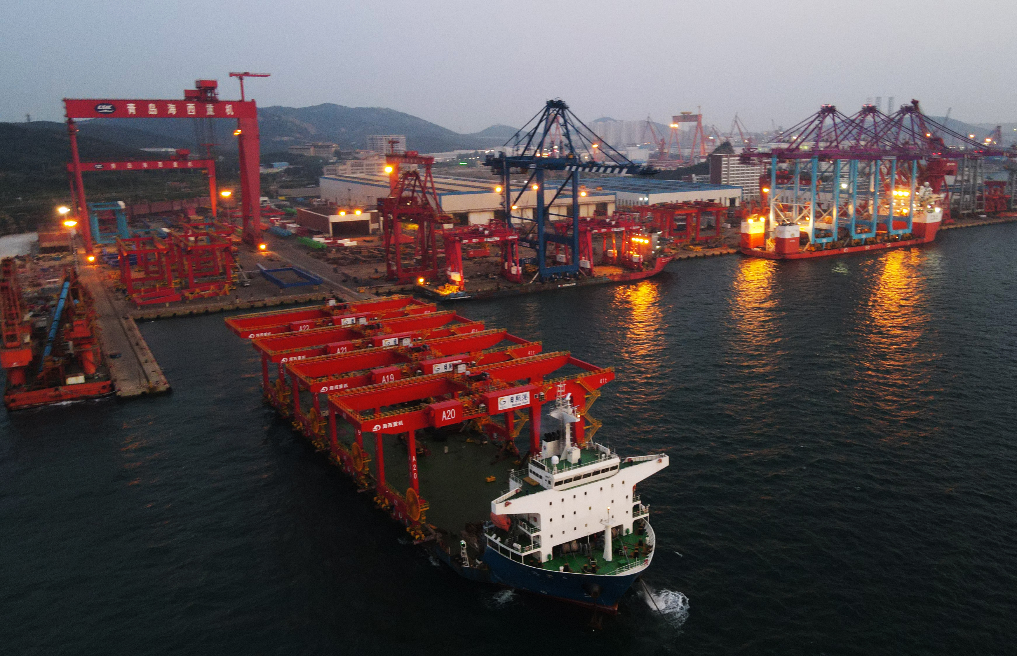 9月8日,中國船舶集團(tuán)旗下武漢船機(jī)海西重機(jī)公司為日照港集裝箱自動化堆場三期項(xiàng)目打造的第一批次4臺自動化軌道吊順利抵達(dá)日照港。