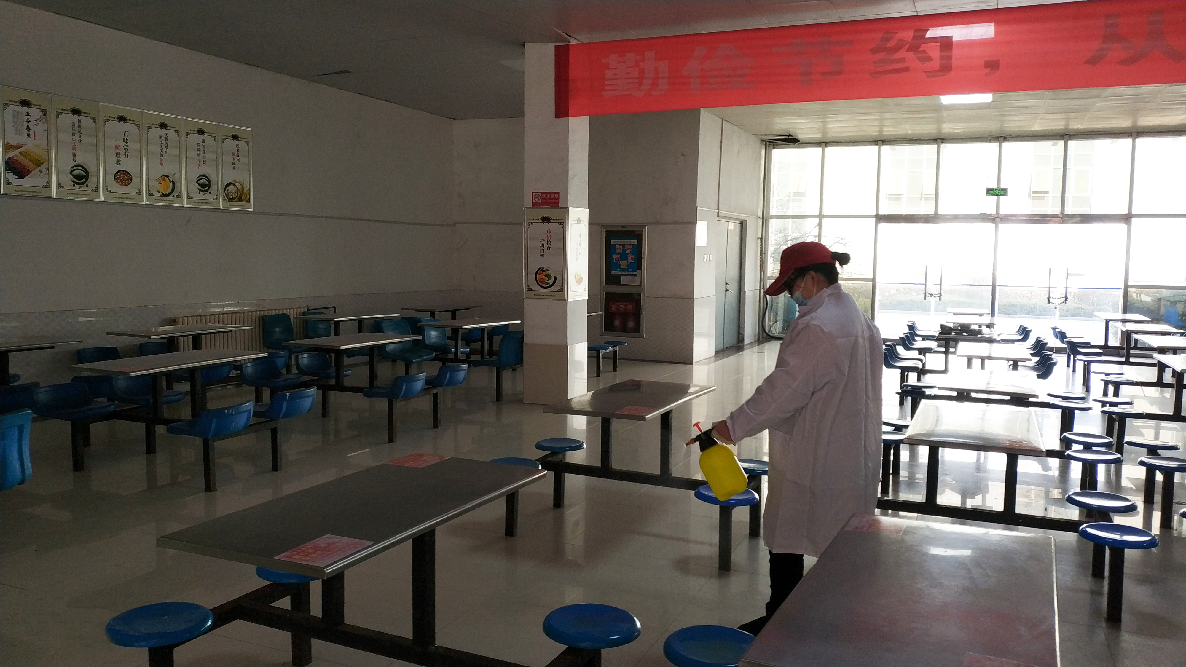 食堂防疫與服務兩手抓,安全就餐有措施。冷鏈食品采取臺賬式管理,供貨隨附批次檢測報告,做到源頭可追溯。排隊保持距離、分散就坐、分時開餐,嚴格做好餐具與公共區(qū)域消毒,食堂工作人員每天崗前測體溫,利用每日早班會強調(diào)疫情防控注意事項。