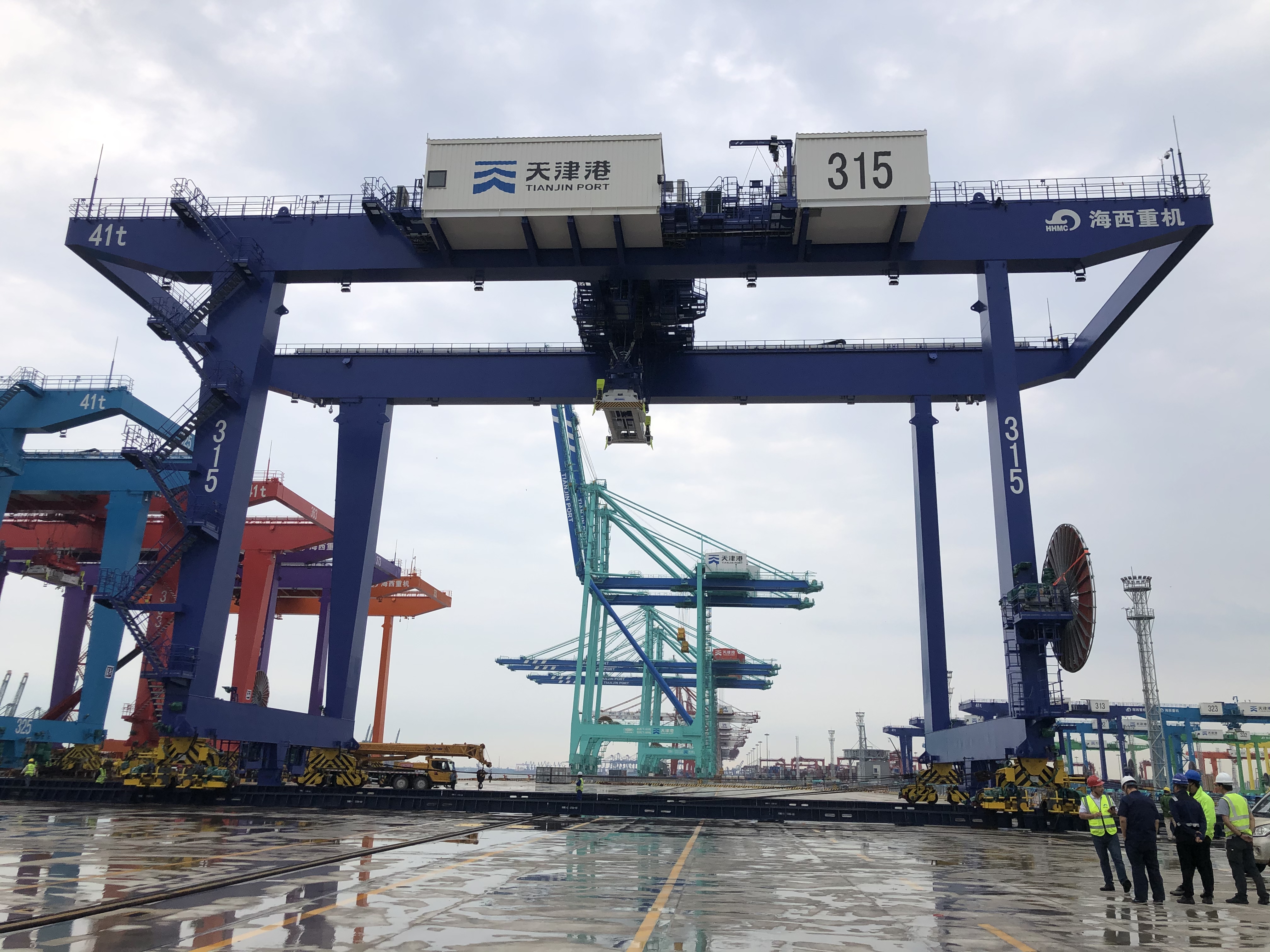 9月25日,中國船舶集團(tuán)旗下武漢船機(jī)海西重機(jī)公司為天津港北疆港區(qū)C段智能化集裝箱碼頭二期工程項(xiàng)目打造的首批7臺自動化軌道吊全部順利完成上岸,與一期自動化軌道吊會師天津港。