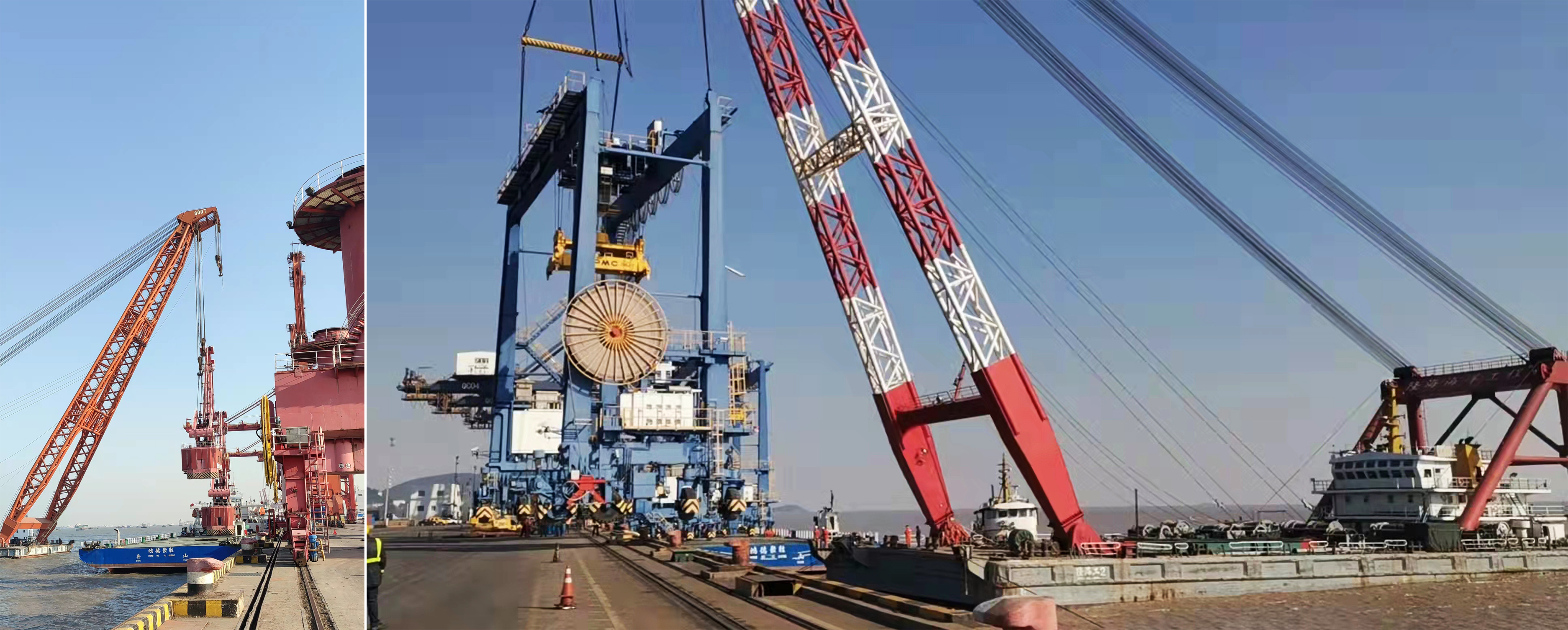 寧波舟山港, 2+4港機連續(xù)大挪移。近期,海西重機順利完成浙江寧波舟山港2臺門機和4臺輪胎吊搬遷項目。