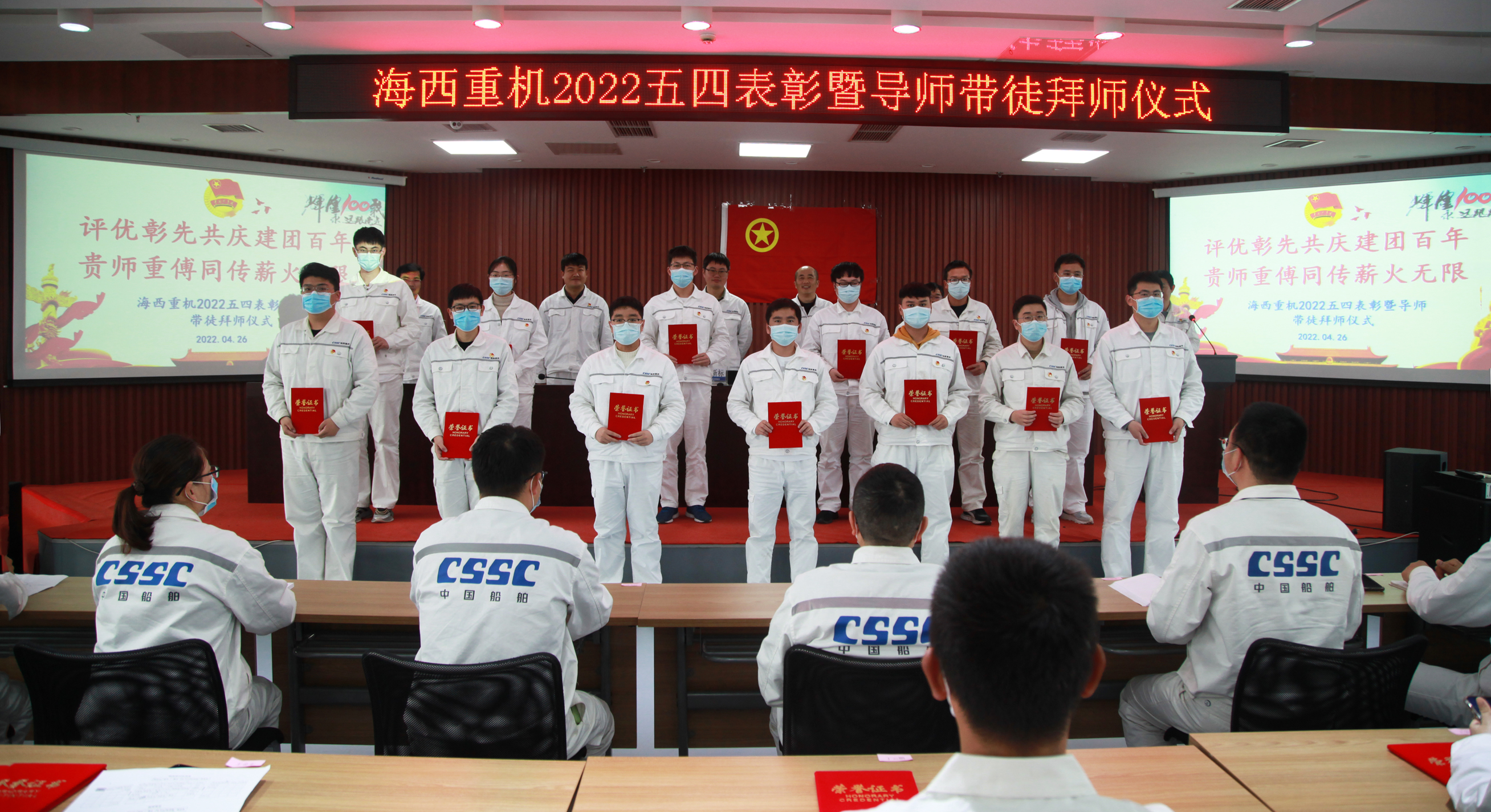 為樹立典型、表彰先進,激勵廣大團員青年以良好的精神面貌和優(yōu)良的工作業(yè)績迎接中國共產(chǎn)主義青年團成立100周年,促進公司青年人才隊伍建設(shè),為公司高質(zhì)量發(fā)展注入活力,4月26日下午,中國船舶集團旗下武漢船機海西重機公司2022五四表彰暨導師帶徒拜師儀式在901會議室順利召開。海西重機黨委副書記、總經(jīng)理蔣新標,黨委副書記、紀委書記、工會主席朱聲凱,副總經(jīng)理謝宛朋,工會副主席金明清,團委書記張金營,人力資源部部長鄧向記,各五四表彰先進集體和個人,2021年優(yōu)秀師徒、2022年新結(jié)對師徒參加會議。