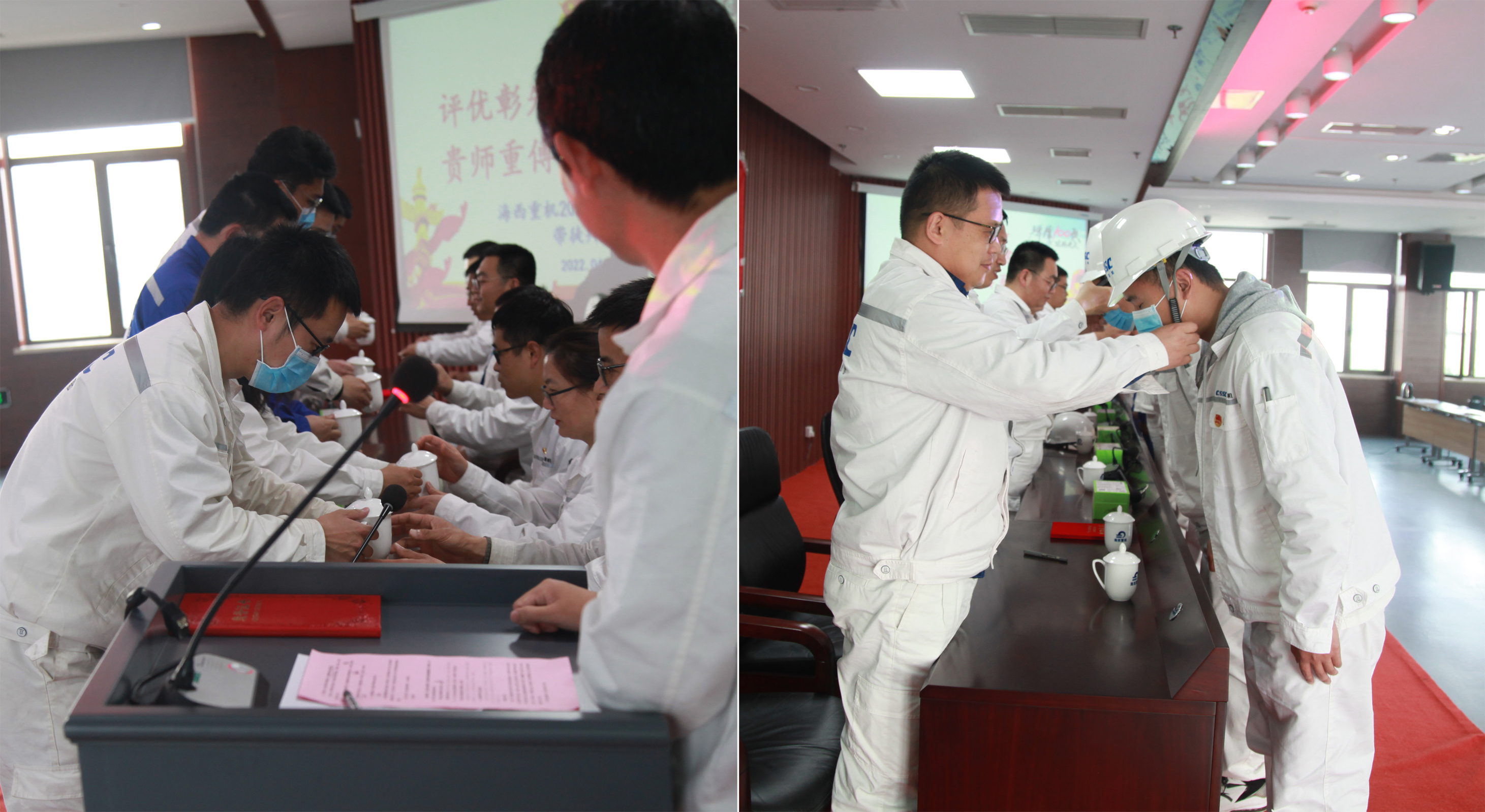 “師傅,請喝茶!”年輕的徒弟們帶著敬意和感激,向自己的師傅敬上一杯清茶。這是在海西重機2022年“導師帶徒”簽約儀式上動人的一幕。凡學莫不有師,為學莫不尊師。青藍相接,薪火相傳。自2017年以來,海西重機組織開展的“導師帶徒”活動,經(jīng)過不斷地傳承改進,已成為一項傳統(tǒng)品牌活動,期間涌現(xiàn)出無數(shù)師徒同心、薪火相傳的動人事跡。一大批青年人才通過這項活動取得了顯著的進步,成長為“思想過硬、素質(zhì)過硬、技術(shù)過硬”的公司骨干和中堅力量。