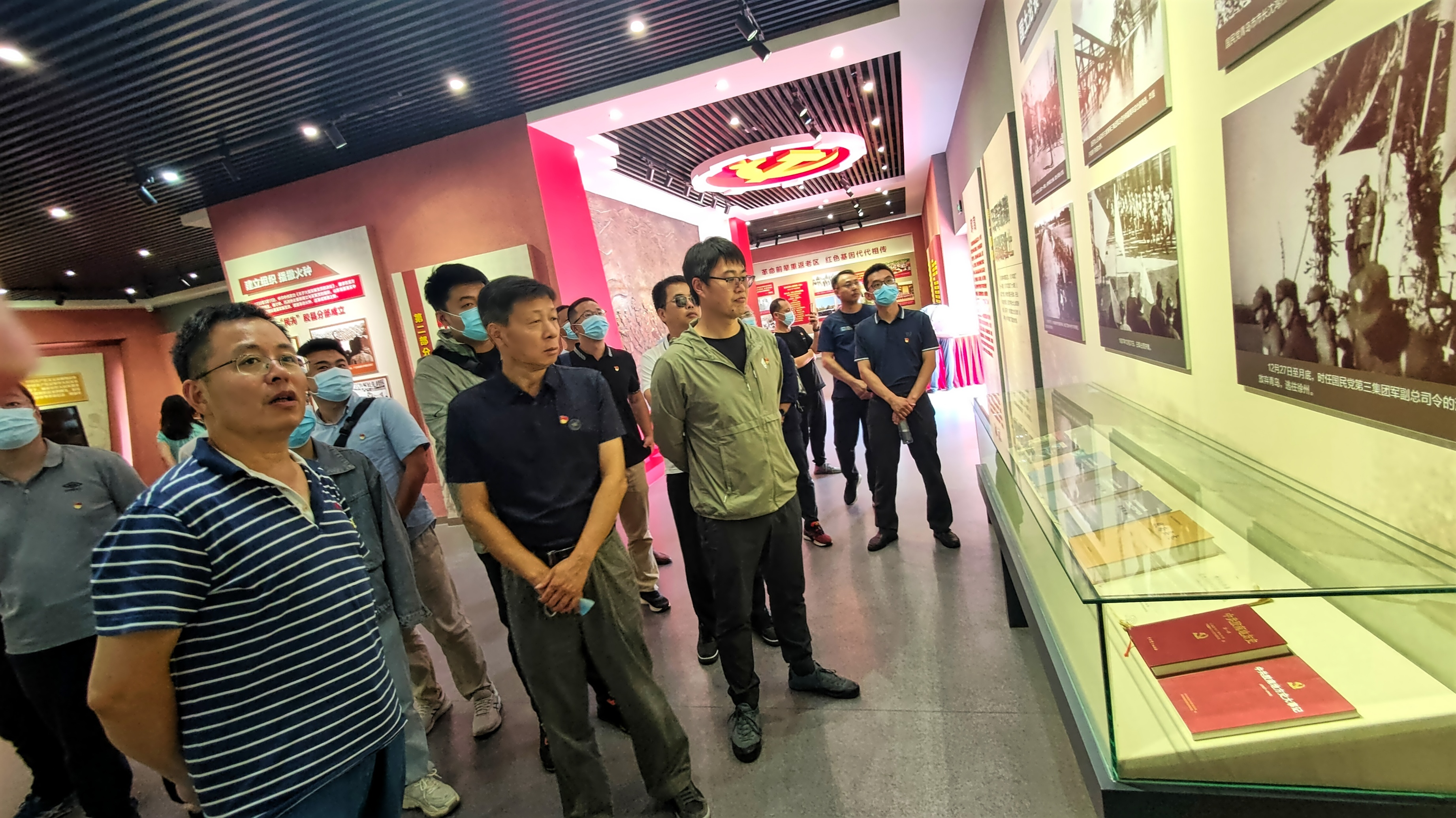 基地進(jìn)門的甬道上鐫刻了楊家山里從第一顆革命火種誕生到最終革命勝利的革命歷程。面對(duì)黨旗,由CCS船級(jí)社青島分社副總經(jīng)理高學(xué)廷和海西重機(jī)黨委副書記、總經(jīng)理蔣新標(biāo)共同領(lǐng)誓,重溫了入黨誓詞。隨后全體黨員參觀學(xué)習(xí)了楊家山里革命史展覽館,“日軍鐵蹄 踐踏國(guó)土”“中流砥柱 使命擔(dān)當(dāng)”“百折不撓 浴血奮戰(zhàn)”“紅色堡壘 銅墻鐵壁”“紅色基因 代代傳承”5個(gè)板塊,充分展現(xiàn)了1938年春從楊家山里“團(tuán)練”成立至1945年珠山縣委在東南崖成立期間,楊家山里人民前仆后繼、頑強(qiáng)奮斗,和全國(guó)人民一道奪取了抗日戰(zhàn)爭(zhēng)的勝利。