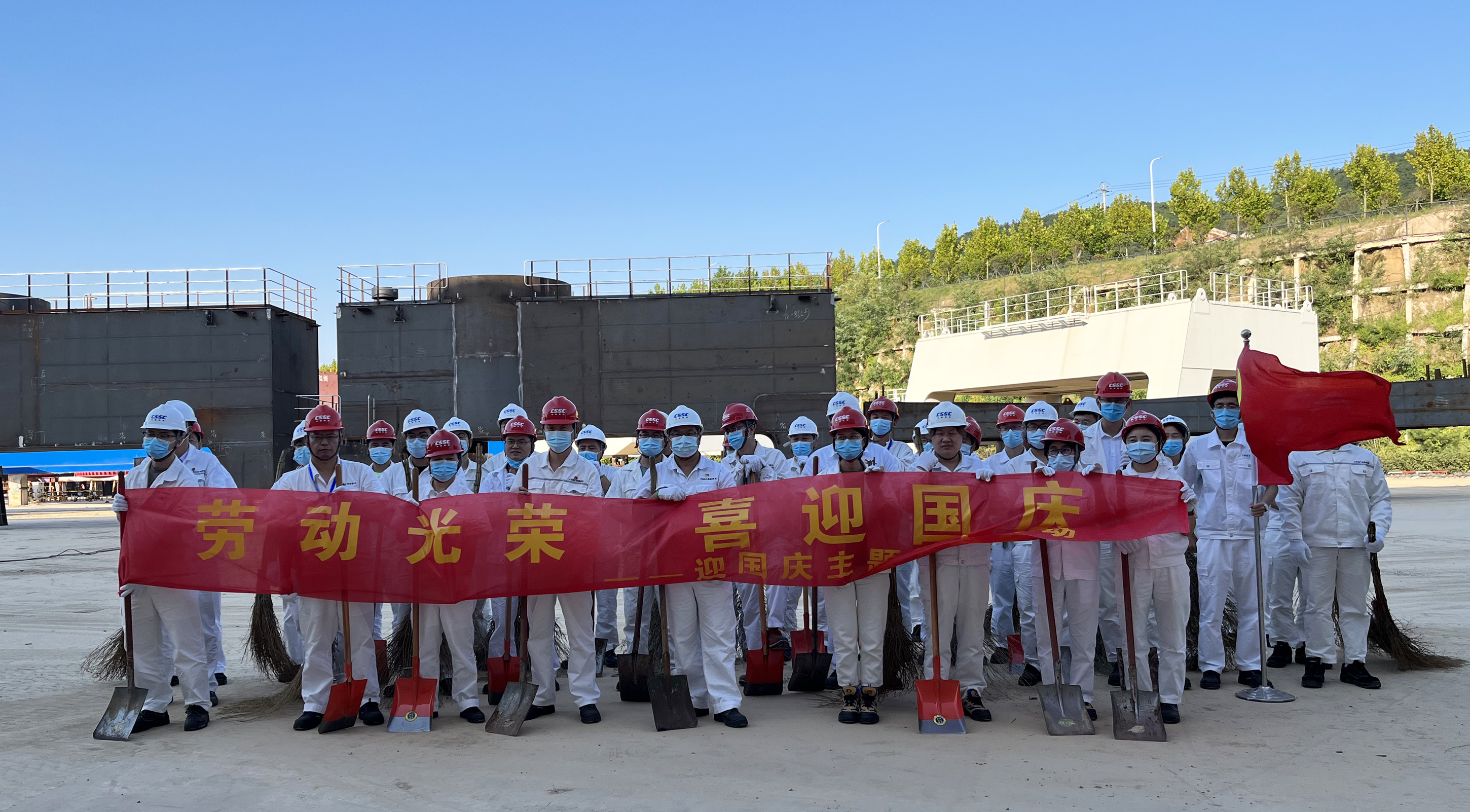 近期臺風(fēng)過境,暴雨天氣帶來了秋季的涼意,卻也給廠區(qū)生產(chǎn)帶來了不便。新拼裝場地區(qū)域雨水褪去后留下一層厚厚的泥土,影響了該區(qū)域的生產(chǎn)活動。值此國慶節(jié)來臨之際,為建設(shè)美麗廠區(qū),喜迎“國慶”,充分發(fā)揮黨員先鋒模范作用以及入黨積極分子、青年團員和骨干的主觀能動性,中國船舶旗下武漢船機海西重機公司黨委于9月20日-9月29日組織開展迎國慶主題義務(wù)勞動活動,清理新拼裝場地泥土。
