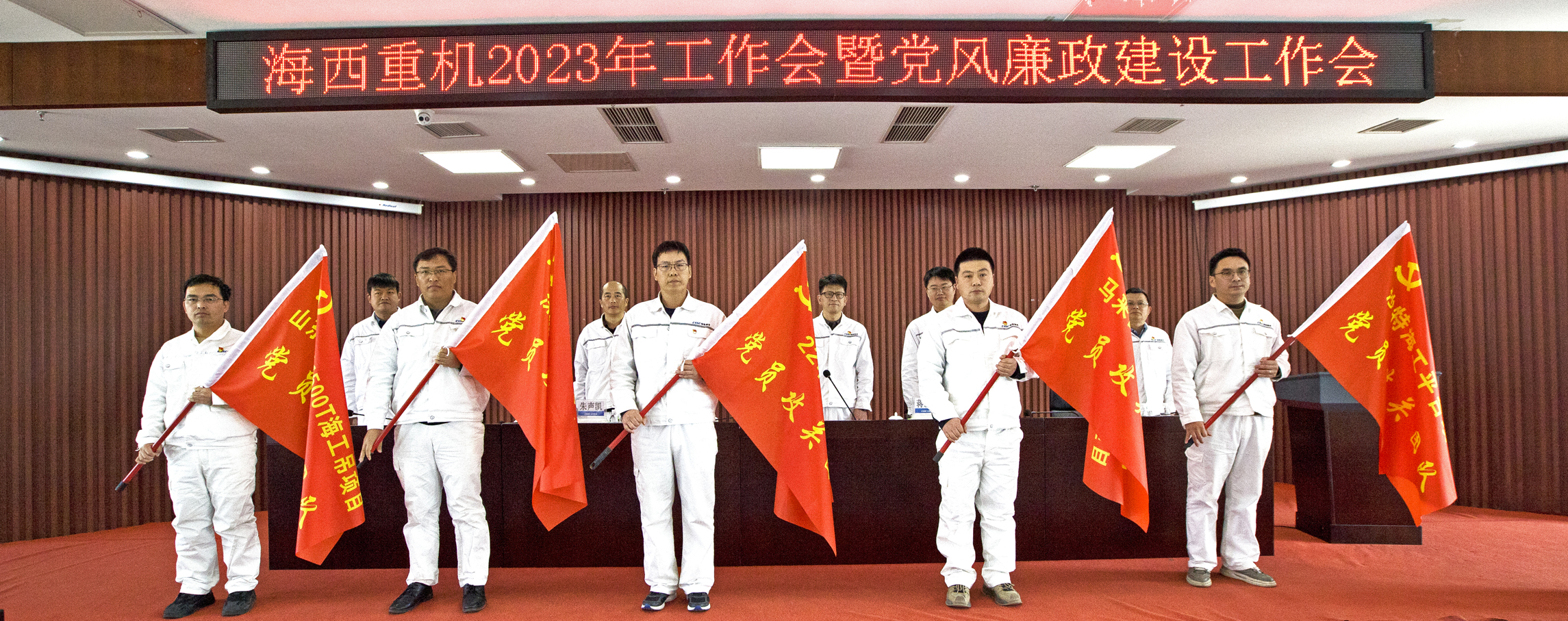 為將黨建工作優(yōu)勢(shì)轉(zhuǎn)化生產(chǎn)經(jīng)營(yíng)工作優(yōu)勢(shì),充分釋放黨建工作“紅利”,進(jìn)一步推動(dòng)黨建工作與生產(chǎn)經(jīng)營(yíng)工作深度融合,針對(duì)2023年生產(chǎn)任務(wù)繁忙,會(huì)上還針對(duì)山東海洋1500T風(fēng)電安裝平臺(tái)1500t起重機(jī)項(xiàng)目、深圳大鏟灣項(xiàng)目、550T門機(jī)項(xiàng)目、馬來(lái)西亞古晉港2臺(tái)岸橋、沙特海工輔助生活平臺(tái)等5個(gè)重難點(diǎn)項(xiàng)目成立黨員攻關(guān)團(tuán)隊(duì),并開(kāi)展授旗儀式,確保各項(xiàng)任務(wù)保質(zhì)按期完成。