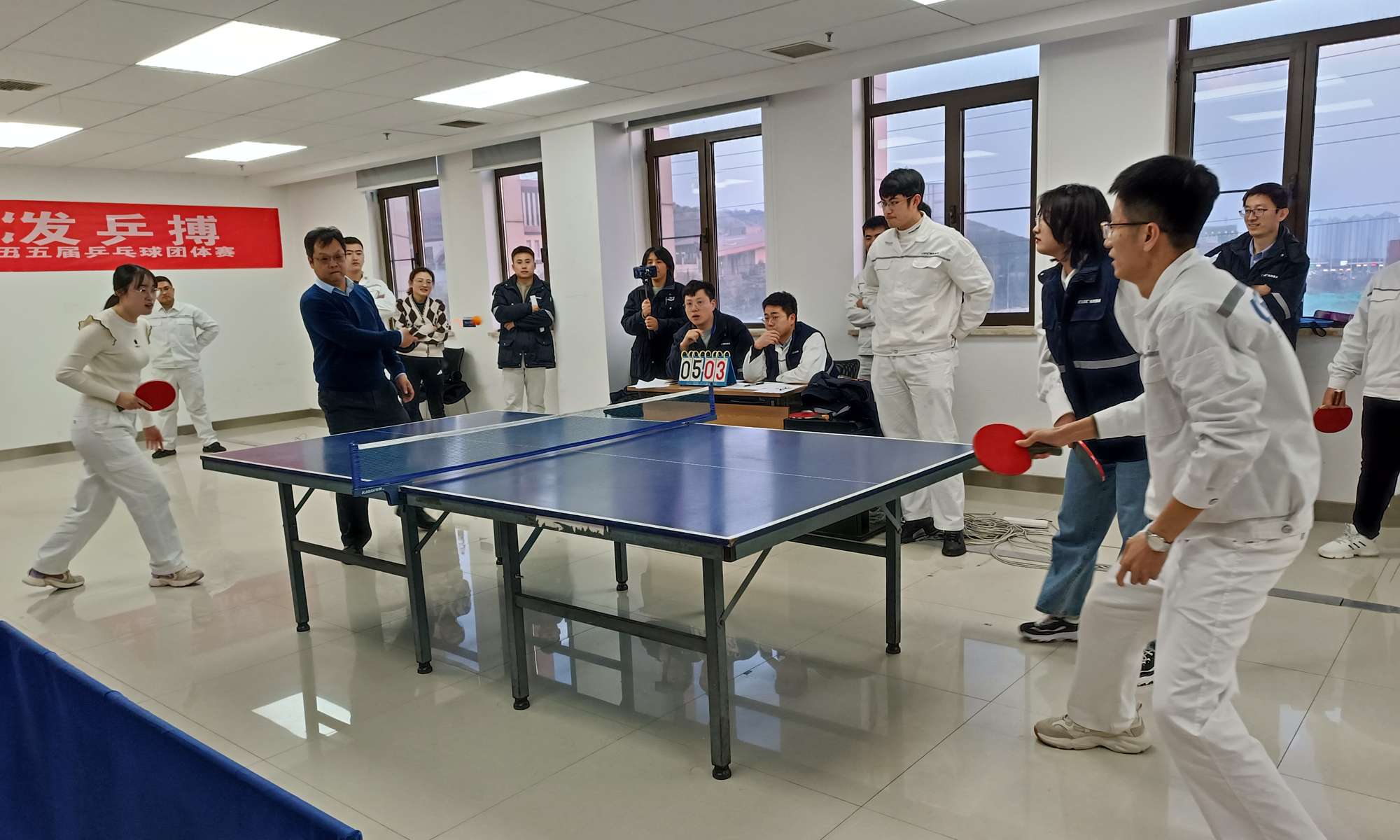 乒乓球團體賽是海西重機的傳統(tǒng)品牌活動,有著廣泛的群眾基礎(chǔ),深受大家的喜愛。本屆團體賽是疫情過后公司舉辦的首場體育競賽活動,各參賽隊伍為達(dá)到最好的競技狀態(tài)積極熱身、蓄勢待發(fā)。賽場上,選手們激揚塵封一冬的熱情,激情揮拍、盡展風(fēng)彩;扣殺、吊球,招招出奇;斗智、斗勇,每分必爭;強隊不輕敵,弱隊也不放棄。戰(zhàn)況瞬息變化,往往是山重水復(fù)疑無路,柳暗花明又一村。賽場氣氛熱烈歡快,精彩的比賽也博得場邊觀眾的陣陣喝彩,紛紛為自己支持的代表隊吶喊助威。