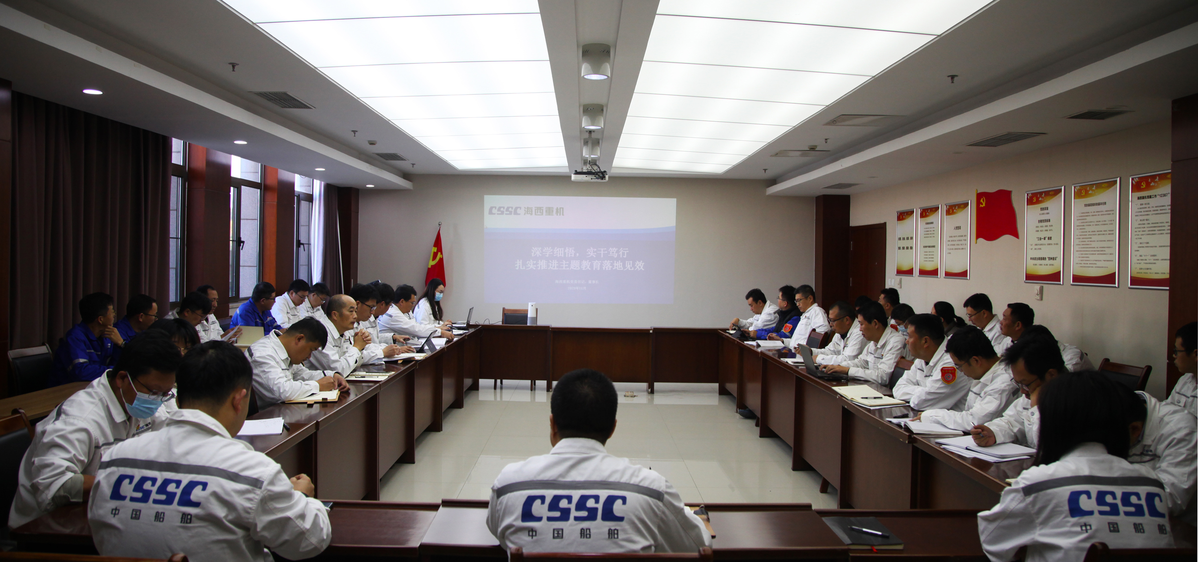 11月6日,中國船舶集團旗下武漢船機海西重機公司黨委書記、董事長李儒新為中層以上管理人員講授“深學細悟,實干篤行扎實推進主題教育落地見效”主題教育專題黨課。