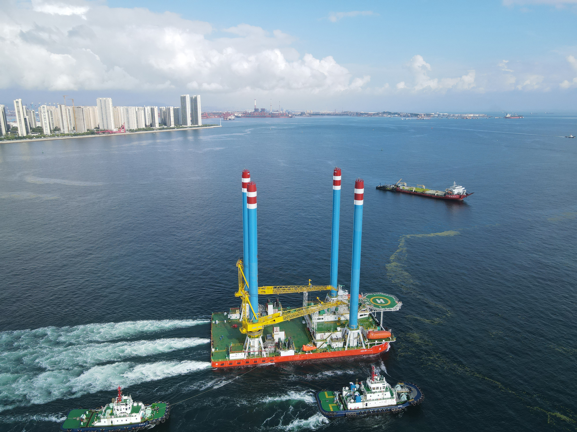 8月3日,在青島口岸官方部門(mén)海事、海關(guān)和邊防的大力支持下,中船集團(tuán)武漢船機(jī)總包建造的JANA506、JANA507兩座新一代淺吃水自升式海上作業(yè)支持平臺(tái)從青島海西重機(jī)碼頭順利起航,開(kāi)赴沙特。該海工平臺(tái)滿載情況下吃水 2m,能夠滿足波斯灣特殊淺水海域油田的服務(wù)工作,這批裝備的交付助力“一帶一路”倡議再添新成果。