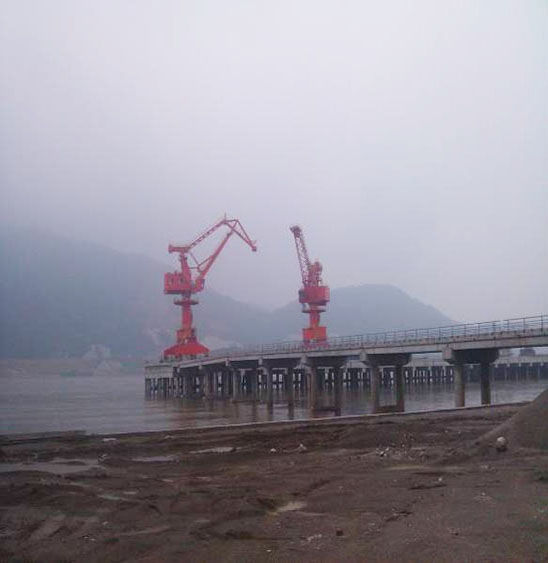 武穴港區(qū)件雜貨碼頭工程是武穴市“十一五”重點港航建設項目,是2009年度黃岡市交通“十件大事”和湖北省水運建設“十大項目”之一,也是目前長江北岸下至安慶上至陽邏區(qū)間最大的件雜貨碼頭,青島海西重機兩臺門機的成功落軌標志著該項目已取得了初步成功。
