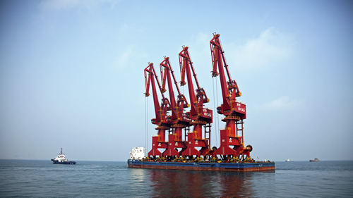 3月12日上午10點(diǎn),海西重機(jī)承接的江蘇方洋物流有限公司8臺(tái)40t-43m門機(jī)中4臺(tái)如期啟航。這4臺(tái)門機(jī)是海西重機(jī)在徐圩港區(qū)大批量設(shè)備的先行者。